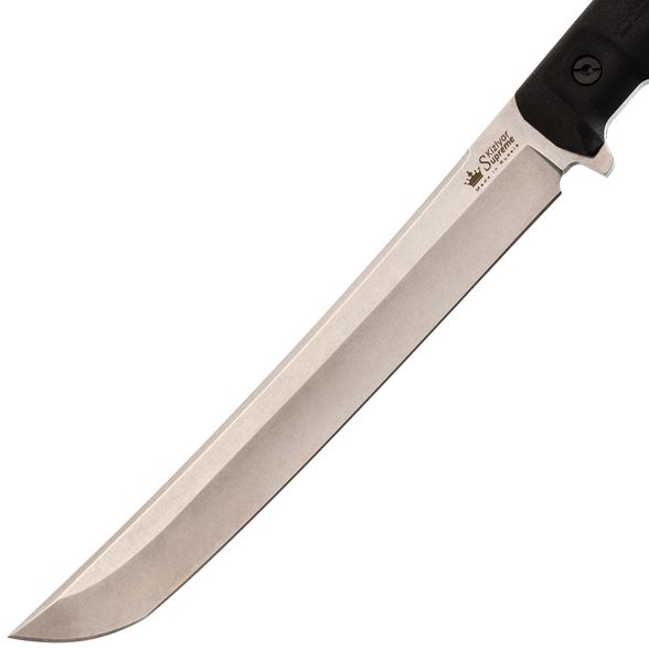 Баланс удачно смещен в сторону клинка, что позволяет с одинаковым комфортом резать, строгать и рубить. Конструкция full-tang обеспечивает огромную прочность. С этой же целью закалка клинка продумана так, чтобы дать ему отличную ударную вязкость и надежность при любых нагрузках.