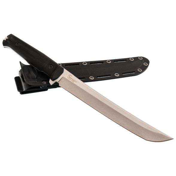 Функционально он объединяет в себе лагерный нож, мачете и японский вакидзаси.