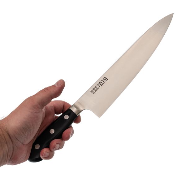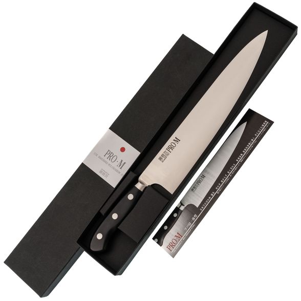 Шеф-нож Kanetsugu Pro-M - незаменимый помощник на кухне для готовки мяса, рыбы, а также крупных овощей и фруктов. Несмотря на то, что нож изготовлен в Японии, он имеет европейский тип, что проявляется в форме клинка и конструкции рукояти. Такой нож станет универсальным инструментом для любого кулинара.