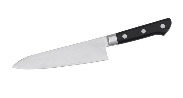 Шеф-нож Tojiro F-807, 18 см имеет не только первоклассный клинок, но и удобную эргономичную рукоять из дерева. Благодаря этому он может не только резать, но также крошить и рубить практически любые продукты.