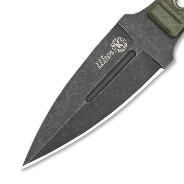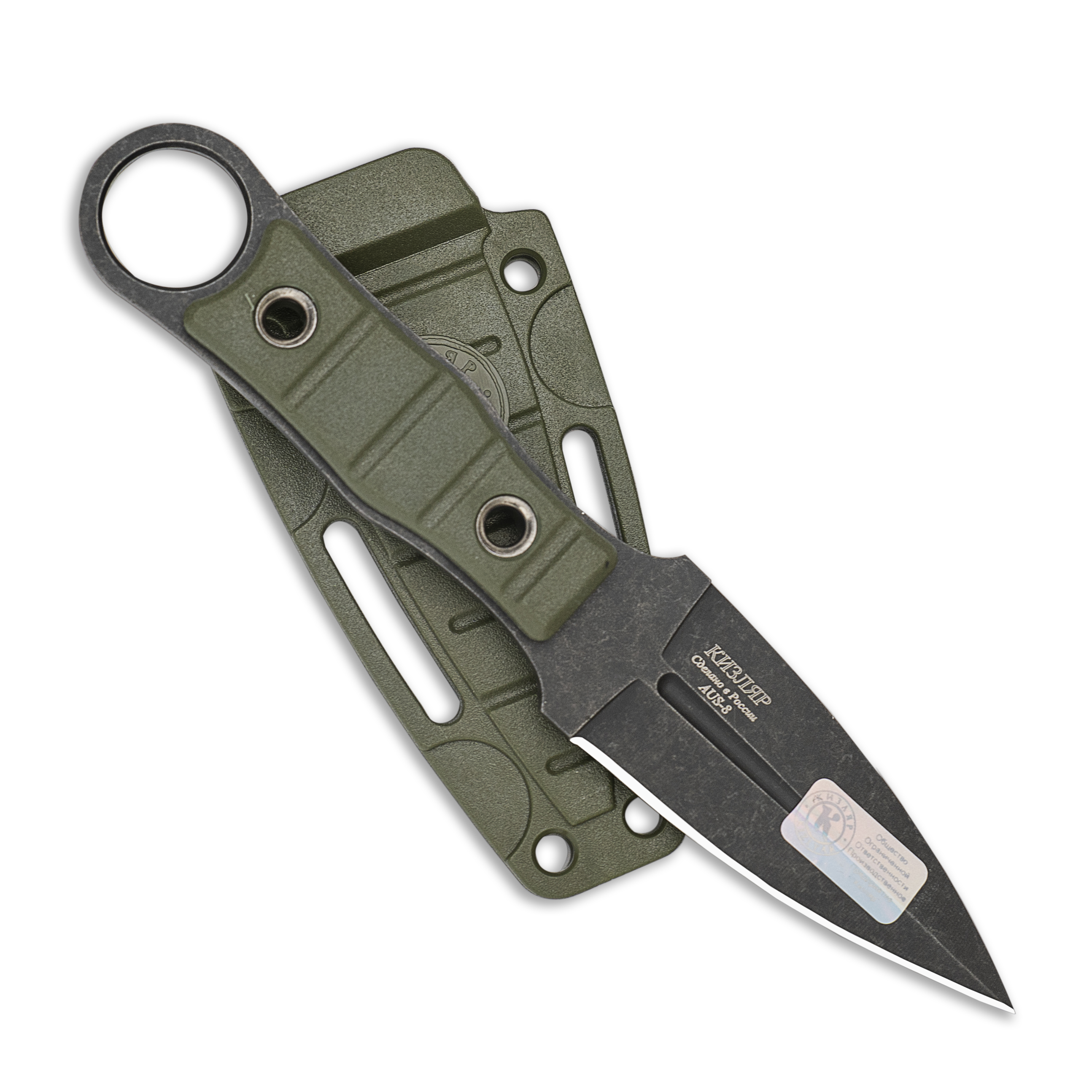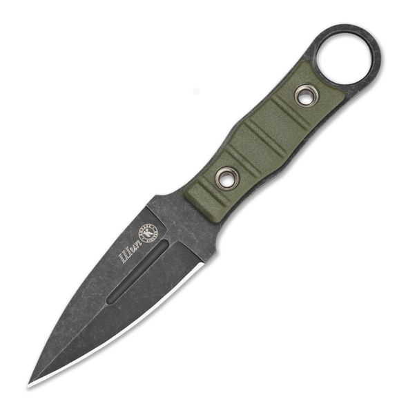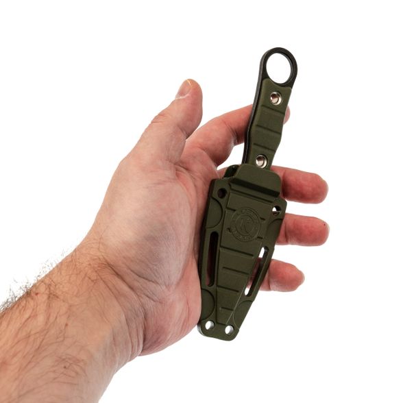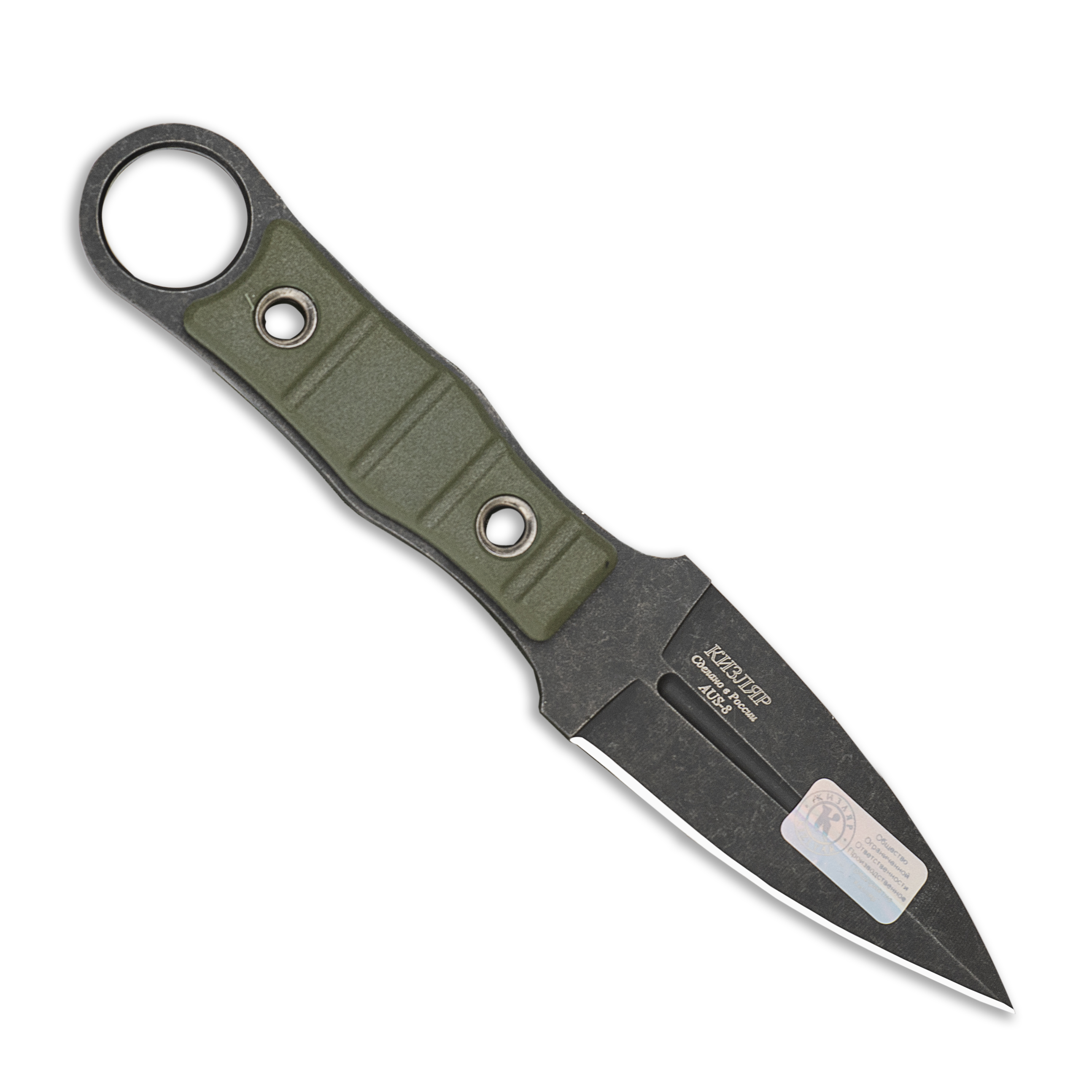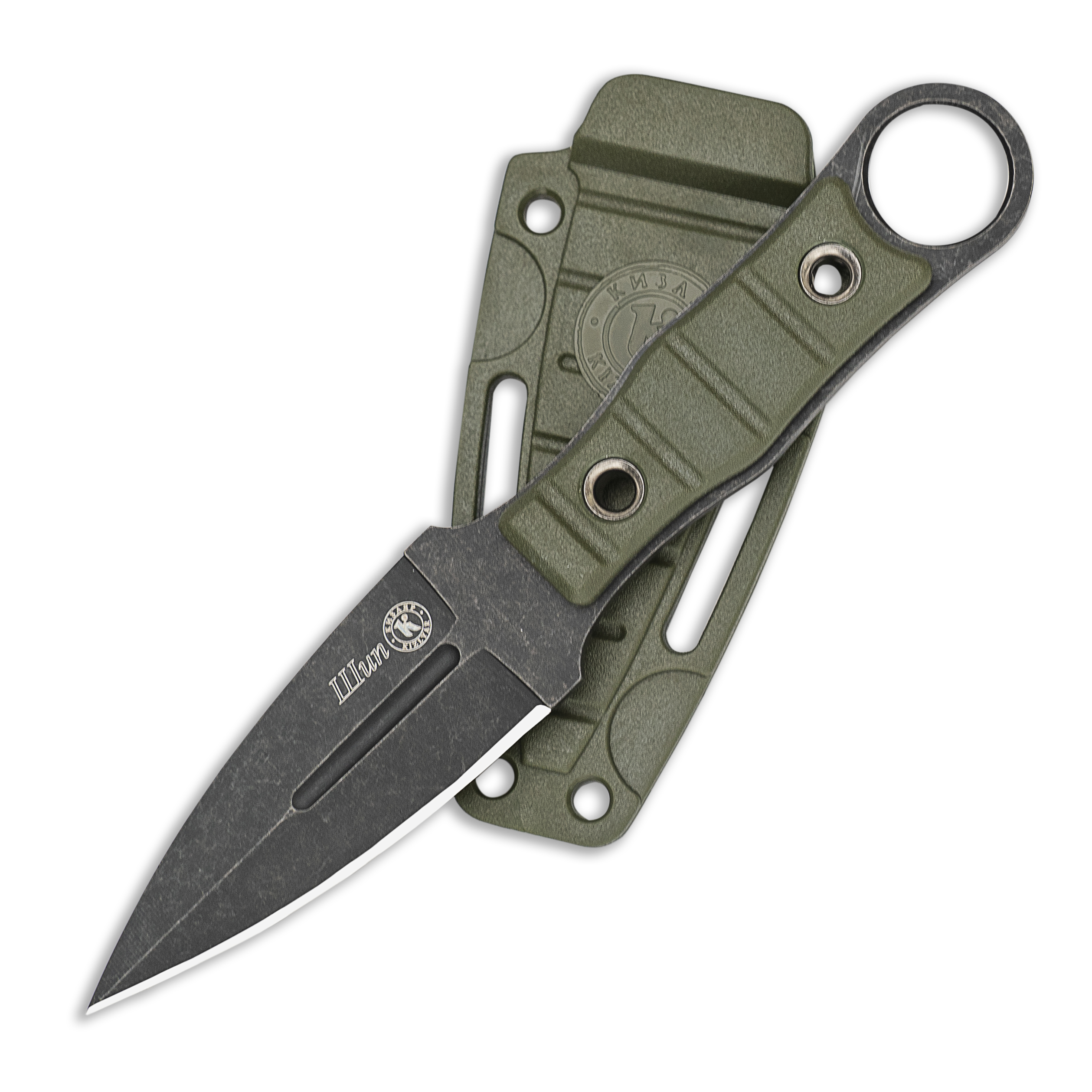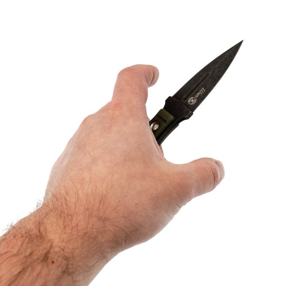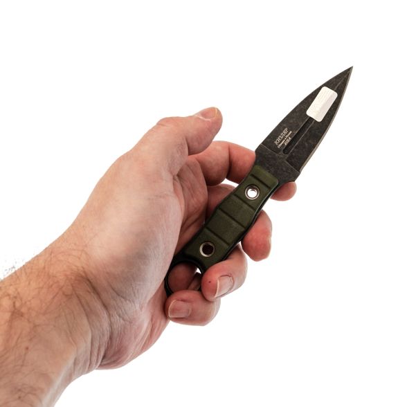 В чёрно-зелёном исполнении Шип выглядит сдержанно: зелёная рукоять и ножны плюс Black Stonewash на клинке и металле рукояти. Это вариант, который хорошо живёт в полевых условиях и не требует бережного отношения.
