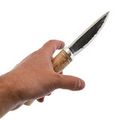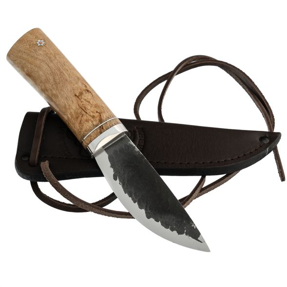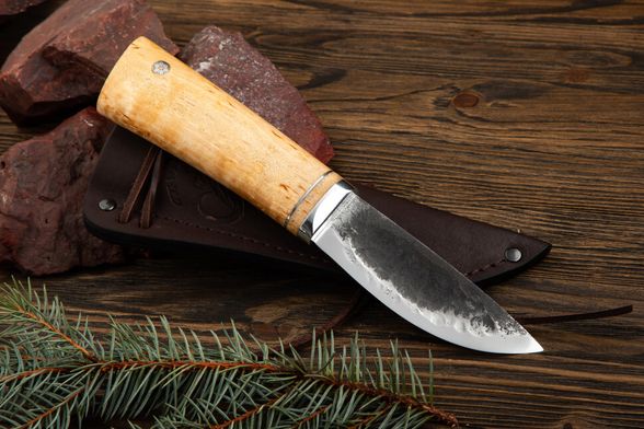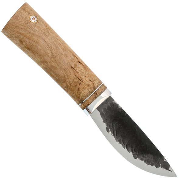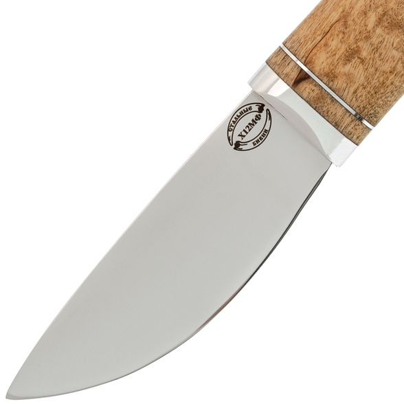 Нож Скинер, сталь Х12МФ, рукоять карельская береза, дюраль, с откованным долом