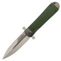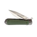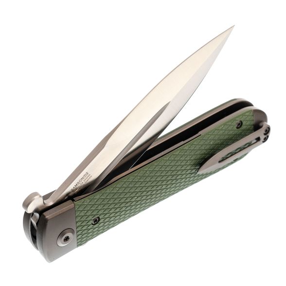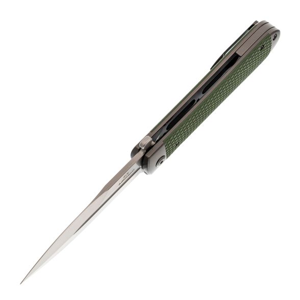 Клинок изготовлен из высококачественной стали D2, которая известна своей способностью долго удерживать заточку и высокой твёрдостью. Его кинжальная форма Spear-Point обеспечивает превосходную проникающую способность и деликатный кончик, идеальный для выполнения тонких и точных надрезов. Флипер, стилизованный под гарду, подчёркивает сходство с традиционными русскими ножами, придавая модели уникальный, узнаваемый вид.