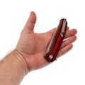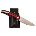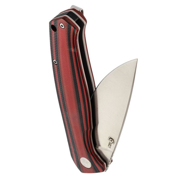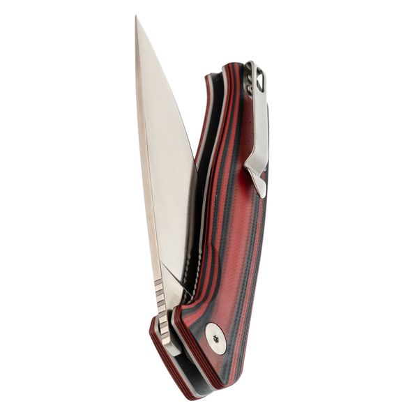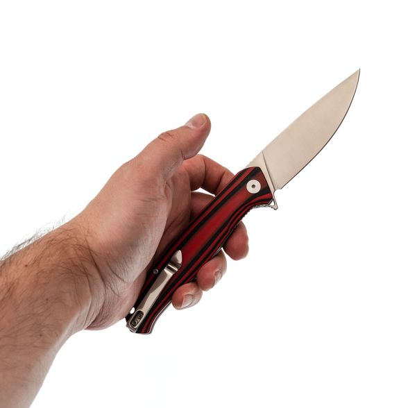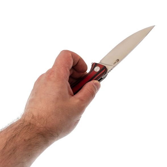 Клинок ножа выполнен в универсальной геометрии Drop-Point, которая давно зарекомендовала себя как одна из самых практичных. Прямые спуски от обуха обеспечивают высокие режущие свойства, позволяя аккуратно работать с различными материалами. Оптимальная длина клинка делает его удобным для большинства повседневных задач. Открытие осуществляется с помощью плавника — быстро, чётко и одной рукой.