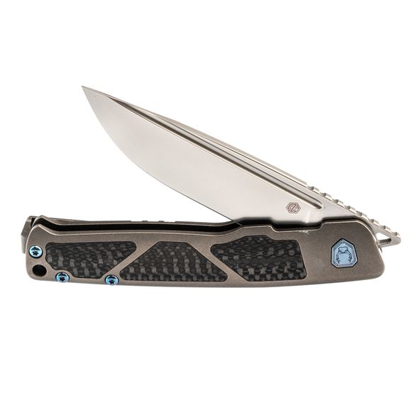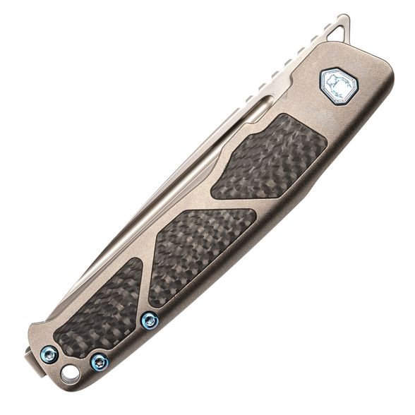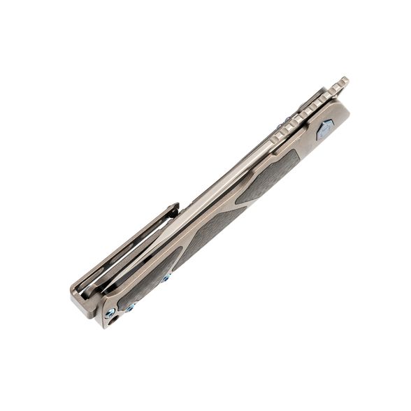 Нож складной Aragil Rikeknife, сталь M390, Titanium/Carbon - ультрасовременный вариант костюмного ножа, выполненный уже по привычной схеме. Здесь используется крутая порошковая сталь, которая отлично сохраняет острые углы заточки. Нож обладает поистине лазерным резом. В качестве материала для рукояти выбран облегченный титановый сплав, который используется в аэрокосмической отрасли. Но это еще не все. Чтобы придать ножу более стильный вид, на рукоять добавлены вставки из геометрического карбона, что придает ножу яркий, необычный и слегка футуристический вид. Клипса с глубокой посадкой обеспечивает надежную фиксацию на краю кармана.