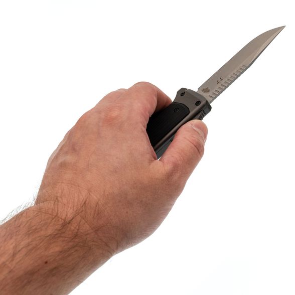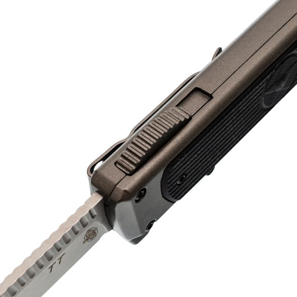 Витязь ТТ создан для тех, кто любит чёткую механику и чистый дизайн. Отсылка к силуэту ТТ считывается с первого взгляда, но на первом месте - удобство: фронтальный автомат обеспечивает прямолинейный выход клинка, быстрый старт одной рукой и компактный формат ношения.