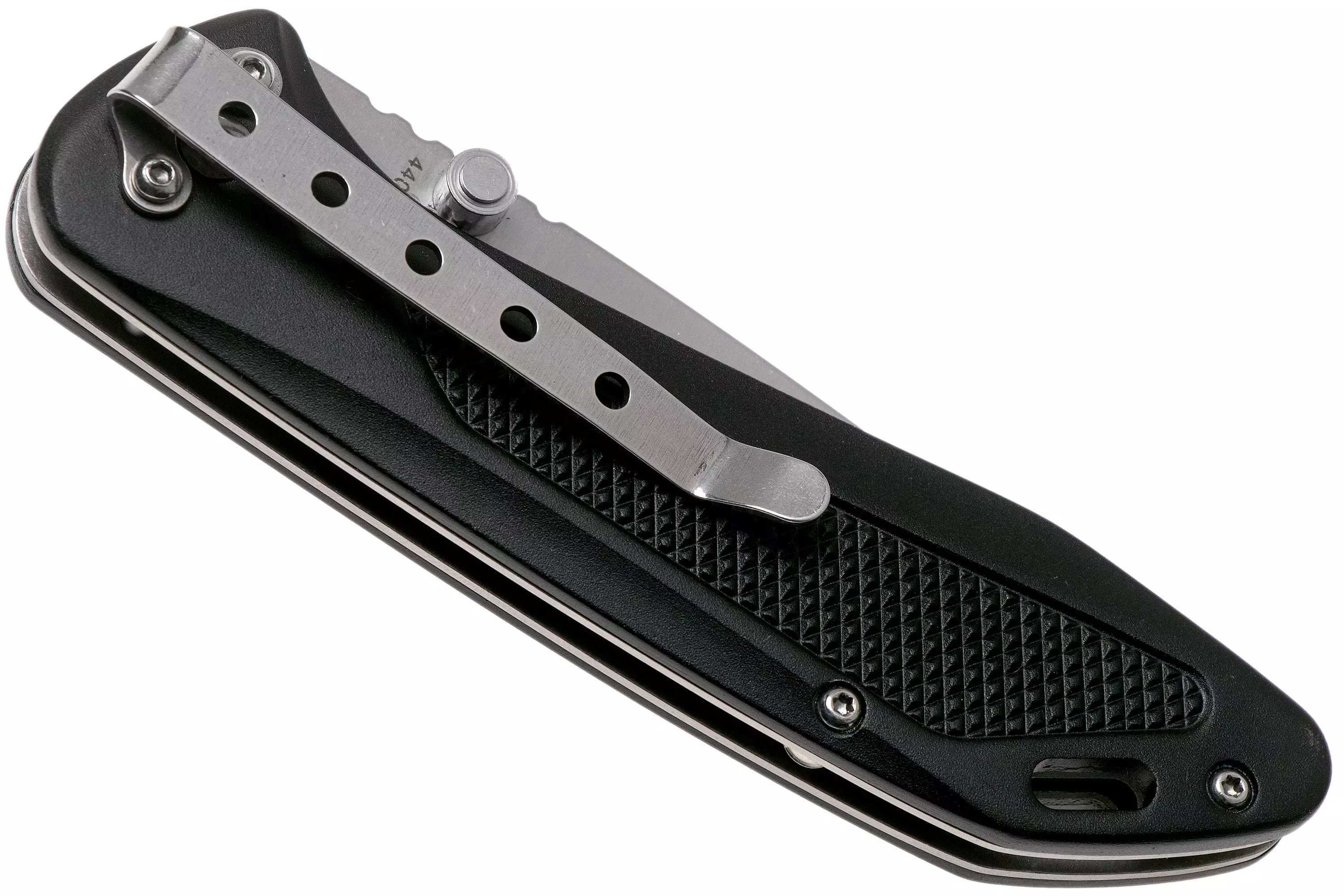 Лезвие из стали 440C открывается плавно и точно благодаря двустороннему шпенёк-упору. Его можно снять, если предпочитаете открывать инструмент двумя руками. Замок Liner Lock фиксирует клинок в открытом положении, гарантируя безопасность при работе. Рифлёная спинка добавляет контроля, особенно при аккуратных движениях.