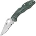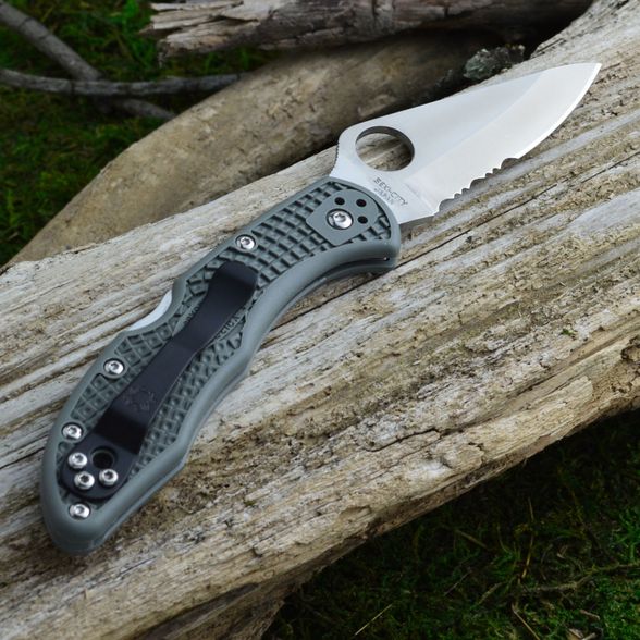 Spyderco Delica (C11PSFG) - складной нож с полусеррейторным лезвием. Модели серии Delica олицетворяют все качества, свойственные ножам Spyderco: надежность, высокое качество исполнения и материалов, привлекательный дизайн. Эти ножи — одни из самых популярных моделей Spyderco, они являются обьектом постоянных экспериментов по улучшению и усовершенствованию.
