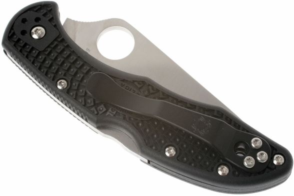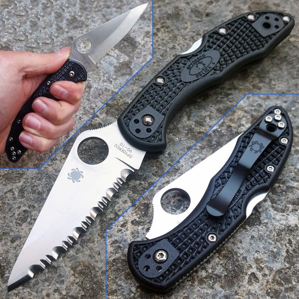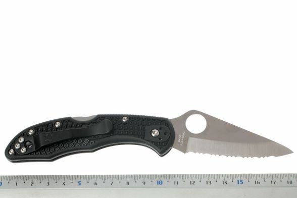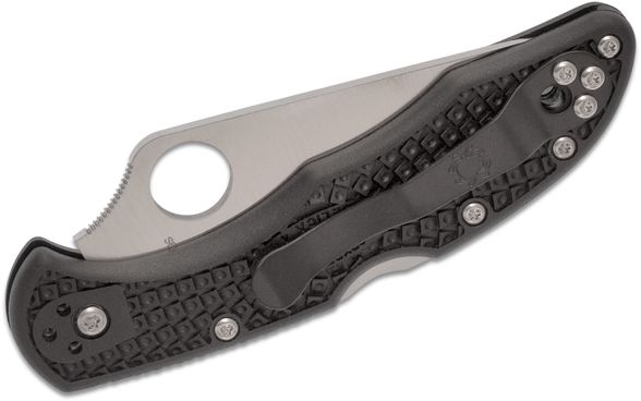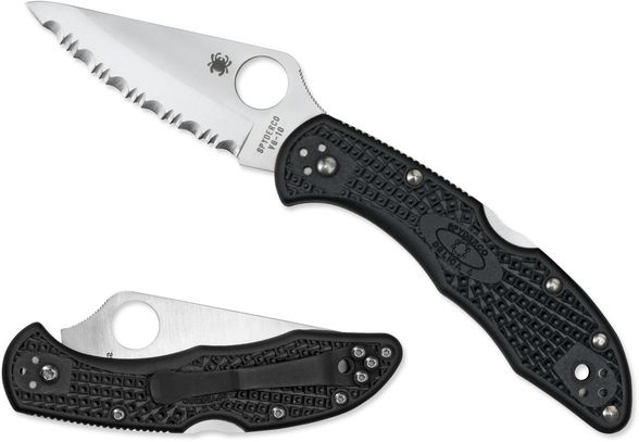 Складной нож Delica 4 - Spyderco 11SBK, сталь VG-10 Satin Serrated имеет плоское саблевидное лезвие из нержавеющей стали VG-10 с сатинированной отделкой и полностью зазубренной кромкой. Рукоять - черная FRN. Клинок ножа Delica изготовлен из высококачественной нержавеющей стали VG-10 японской фирмы Seki-City и имеет зазубрины на позвоночнике, которые простираются от рампы до вершины рукояти. Оригинальное отверстие для большого пальца Spyderco на клинке позволяет открывать нож правой или левой рукой, а шайбы из фосфористой бронзы на шарнире делают ход клинка плавным. Delica имеет легкую рукоять из армированного стекловолокном нейлона (FRN) со скелетонизированными накладками из нержавеющей стали и прочным механизмом блокировки спины. Рукоять имеет винтовую конструкцию для быстрой, простой чистки и регулировки. Чешуйки FRN имеют запатентованное компанией Spyderco двунаправленное текстурирование, чтобы рука не соскальзывала под давлением. Карманная клипса имеет 4-х стороннюю реверсивную конструкцию для ношения ножа вверх/вниз и влево/вправо. Delica - это уменьшенная версия ножа Spyderco Endura. Оба ножа пользуются огромной популярностью на протяжении многих лет благодаря легкости, высоким эксплуатационным характеристикам и доступной цене.