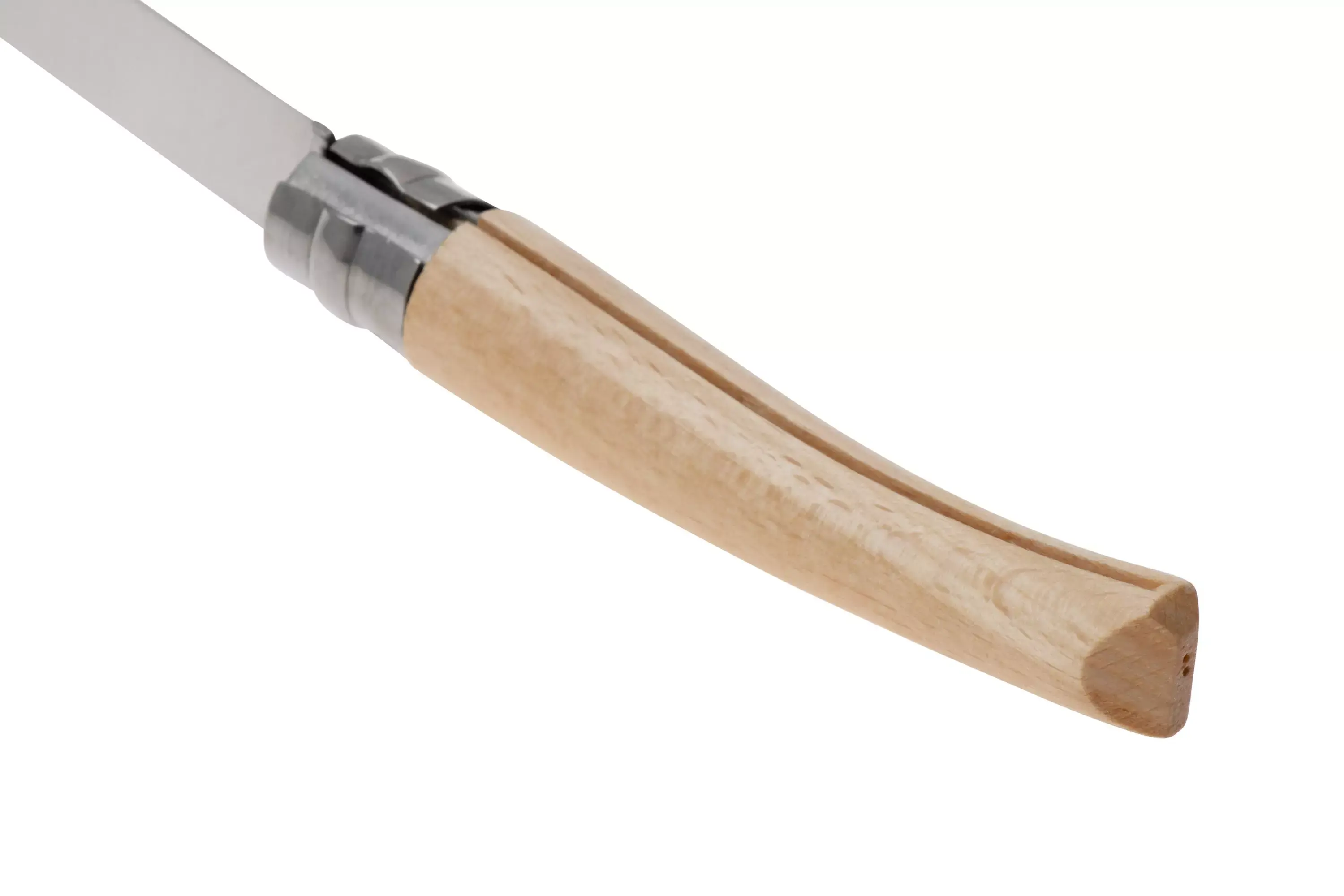 Opinel N8 Филейный - это компактный складной нож, в котором чувствуется почерк французских мастеров. Он лёгкий, точный и удивительно удобный в повседневной работе. Эта модель хорошо знакома тем, кто любит практичность без излишеств: всё, что нужно, собрано в простом, но продуманном до мелочей инструменте. N8 одинаково уверенно чувствует себя и на рыбалке, и на кухне - где важно, чтобы нож слушался руки.