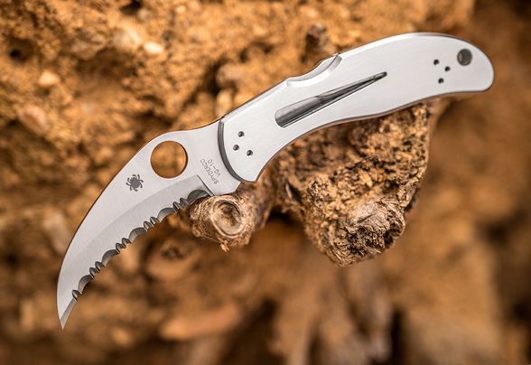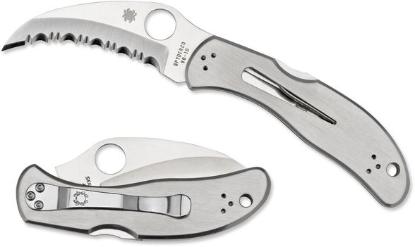 Клипса на складном ноже Harpy Spyderco 08S позволяет закрепить его на кармане или ремне, обеспечивая легкий доступ. Лезвие с серрейторной заточкой и выполненное из стали VG-10 подходит для резки веревок и других прочных материалов.