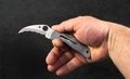 Складной нож обладает изогнутым лезвием, длина клинка составляет около 7 см. Он выполнен из высококачественной стали VG-10. Страна производитель Япония, что гарантирует отличные характеристики инструмента в плане прочности и долговечности.