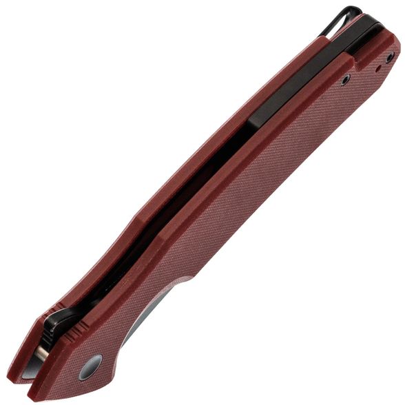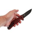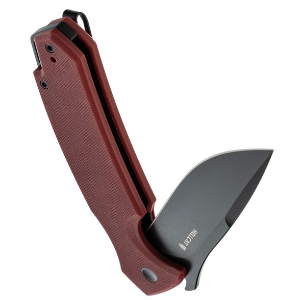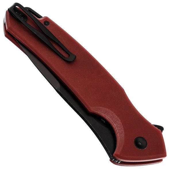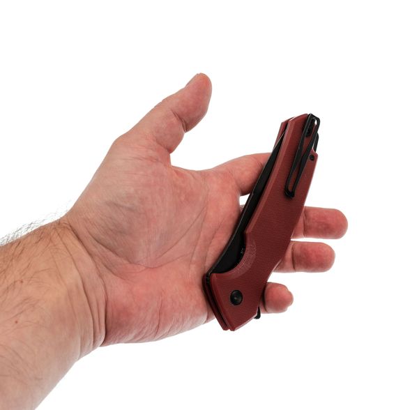 Рукоять ножа тщательно продумана: комфортно ложится в ладонь благодаря эргономичной форме и специальной подпальцевой выемке, предотвращающей соскальзывание руки на клинок. Текстурированная поверхность накладок из G10 обеспечивает надёжный захват. Наличие отверстия под темляк и удобная переставляемая клипса глубокого ношения делают эксплуатацию ещё более удобной.