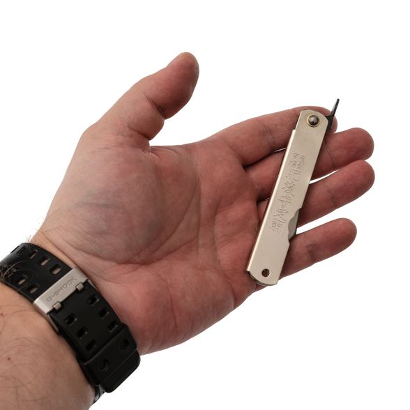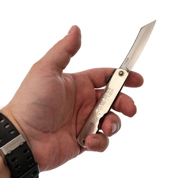Что-то я подзапутался. Заказывал арт. HKI-80Silver, а получил, на коробке написано, арт. HKC-80Silver Higonokami Reverse Tanto, сталь AoGami (не SK-5 как в заказе). Нож серебристый, выглядит как HKI на фото, а не серый как HKC. Одним словом, не понял что на самом деле получил, но нож мне понравился, легкий, маленький, резучий) В подарок был еще хэнк Ножиков поэтому твердые 5 звезд, коробку выкинул, нож оставляю себе :)