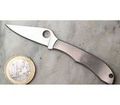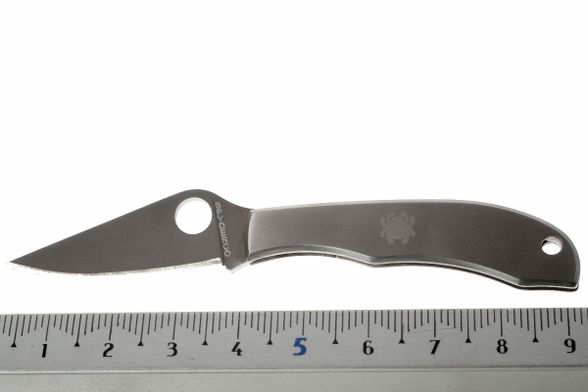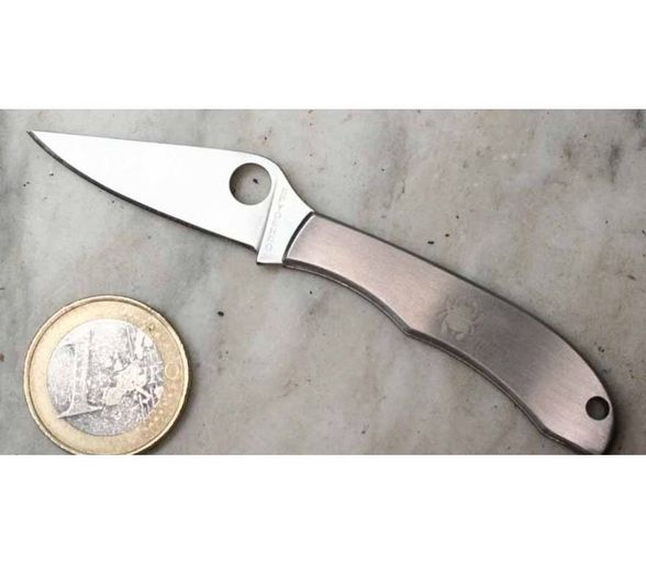 Миниатюрная пчелка от Spyderco. Это крохотный нож с системой слипджоинт. Клинок выполнен из 3Cr13, это простая китайская сталь. Главным ее приемуществом является хорошее противодействие коррозии. Рукоять также выполнена из нержавеющей стали и на ней можно нанести гравировку. На рукояти вырезано отверстие, поэтому HoneyBee можно прицепить к связке ключей.