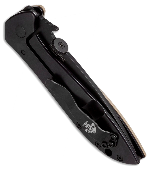 Модель CQC-4K обладает модифицированной формой клинка Clip Point, которая придает функциональность и благоприятно сказывается на качестве реза. Покрытие Black-Oxide защищает лезвие от потертостей и придает антибликовое свойство. Сталь 8Cr13MOV обладает хорошей коррозионной стойкостью и длительным сохранением режущих свойств. Рамка рукояти стальная, с одной стороны имеется накладка из текстурированного пластика G-10. Другая часть полностью стальная, с покрытием Black-Oxide, в ней располагается надежный замок Frame Lock. На обухе ножа в области осевого винта расположен вэйв (плавник ). Это запатентованная система ускоренного ручного открытия от компании Эмерсон. Суть ускоренного открытия состоит в следующем. Во время вытаскивания ножа из кармана плавник ( вэйв ) цепляется за край ткани, тем самым удерживая лезвие, в это время рукоять при помощи осевого винта проворачивается относительно неподвижно зафиксированного клинка, по инерции открывая нож. Для традиционного открытия на обухе предусмотрен шпенек в виде диска.