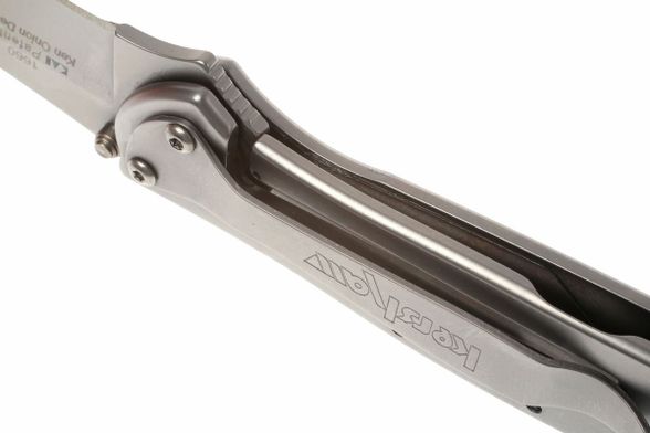 Стальная рукоять придаёт ощущение прочности и стабильности. Плавные линии характерны для дизайна Кена Ониона - всё ложится в ладонь естественно, без острых углов и излишеств. Клипса удерживает изделие на месте, не мешая при ношении, а общий баланс делает использование комфортным день за днём.