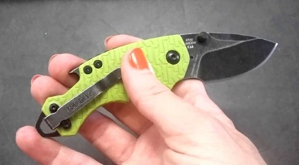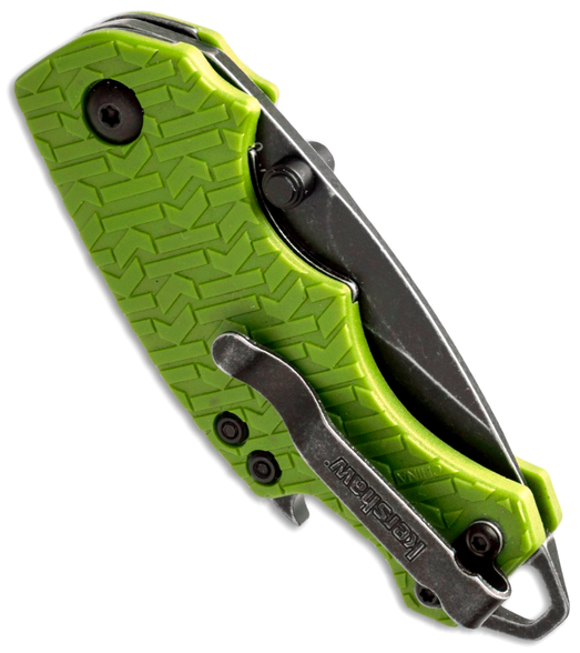Складной нож 8700LIMEBW Shuffle от компании KERSHAW может вызвать вопрос, что же можно сделать таким маленьким ножом необычной формы? Это чувство будет присутствовать до тех пор, пока он не попадет к вам в руки. Полукруглые вырезы в нижней части рукояти придают исключительно удобный и безопасный хват, и исключают малейшее смещение руки на режущую часть клинка. Ближний к осевому винту в открытом положении ножа образуется чойл – подпальцевая выемка. Новая форма текстуры K-Texture обеспечивает дополнительную цепкость хвату. Узор текстуры состоит из много раз повторяющейся буквы «К». Лезвие ножа изготовлено из нержавеющей стали 8Cr13MOV, рукоять из текстолита. В хвостовой части рукояти расположены открывалка для бутылок и отвертка, а также сквозное отверстие для доукомплектации ножа шнурком или темляком. Для удобного ношения ножа в кармане брюк 8700LIMEBW снабжен металлической клипсой.