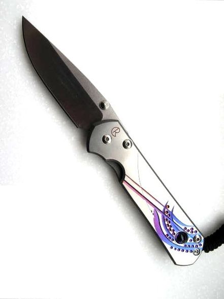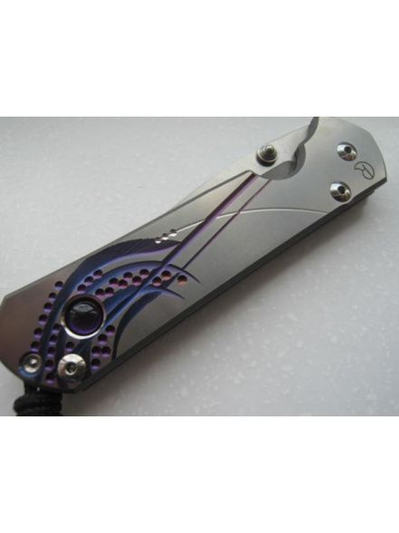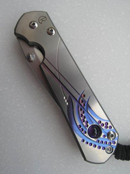 Рукоять ножа инкрустирована аметистом, обработанным методом кабошон
