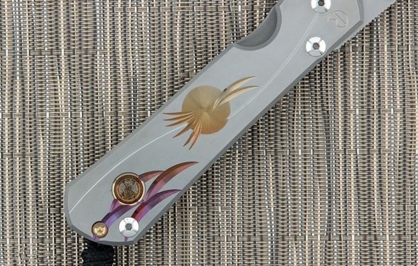 Рукоять ножа инкрустирована цитрином, обработанным методом кабошон