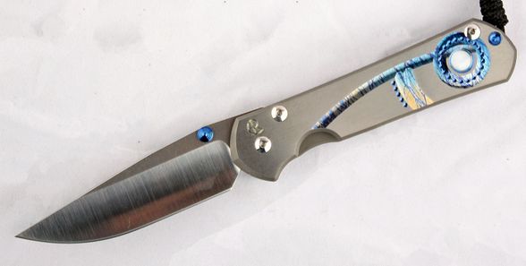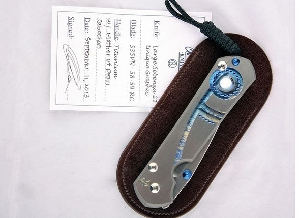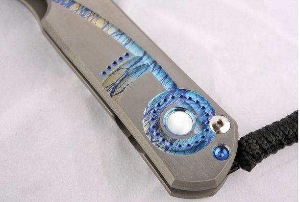 Рукоять ножа инкрустирована перламутром, обработанным методом кабошон