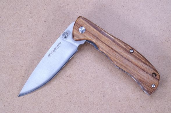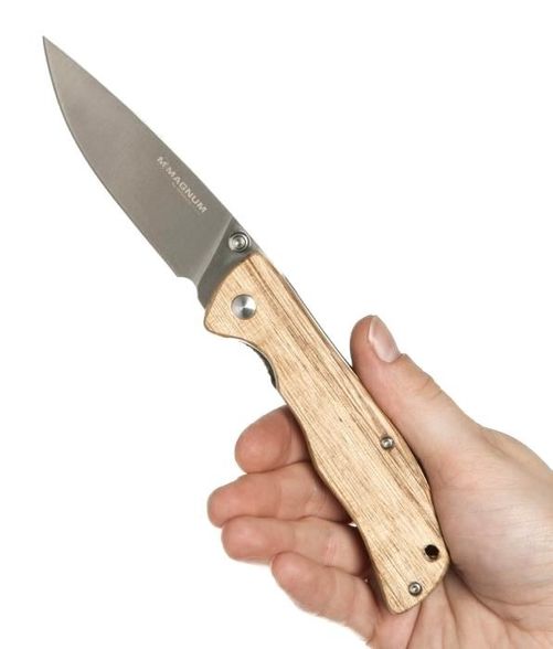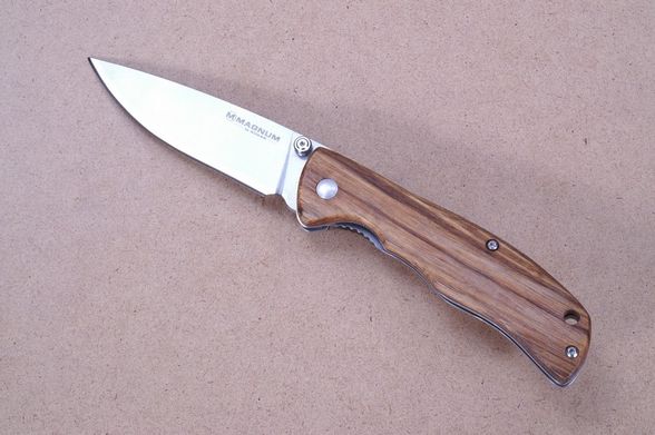 Складной нож Magnum Backpacker от немецкого производителя Boker - компактный функциональный фолдер для использования в условиях туристического похода. Модель оснащена надежным и удобным механизмом открытия одной рукой Liner lock. Подпальцевая выемка служит барьером от соскальзывания руки во время работы с инструментом. Клинок ножа Магнум от компании Бокер изготовлен из практичной в эксплуатации стали марки 440А, а рукоять - из натуральной древесины.