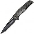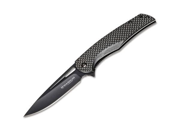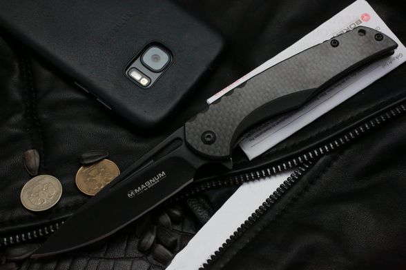 Складной тактический и повседневный нож по очень приятной цене – это Boker Magnum Black Carbon. Он легкий и прочный, имеет длинный и острый клинок, покрытый черным финишем, делающим нержавеющую сталь 440А еще более неуязвимой к ржавчине. Копьевидная форма лезвия ножа Boker Magnum отлично справляется с резом, а также с колющими и проникающими ударами. Для раскрытия клинка можно использовать одну руку, тут вам поможет небольшой флиппер, если же нет такой экстренной необходимости, нож легко открывается при помощи овального отверстия под ноготь.