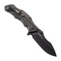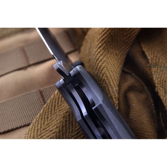Нож складной НТ-1 (Black) – оптимальное решение как для приверженцев экстремального отдыха, так и для тех, кому нужен надежный помощник в выполнении бытовых задач. Клинок складного туристического ножа НТ-1 из высокопрочной инструментальной стали D2 имеет полимерное черненное покрытие. Открывается нож как двухсторонним шпеньком, так и специальным "плавником". Надежная фиксация в разложенном состоянии достигается благодаря системе liner lock (толщина данного замка – 2,5 мм). Раскладной туристический нож – это ценное приобретение для каждого мужчины, которое порадует не только функциональностью, но и оригинальным дизайном.