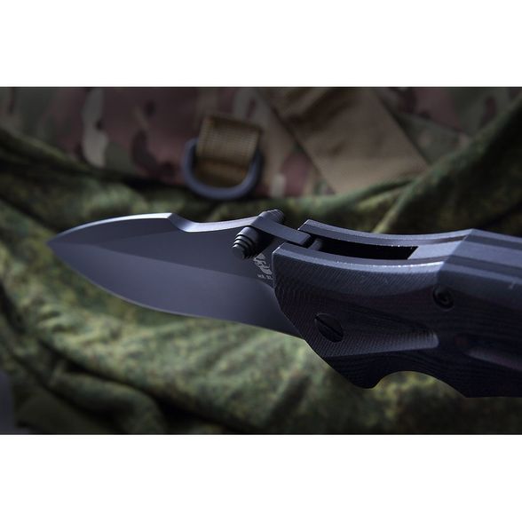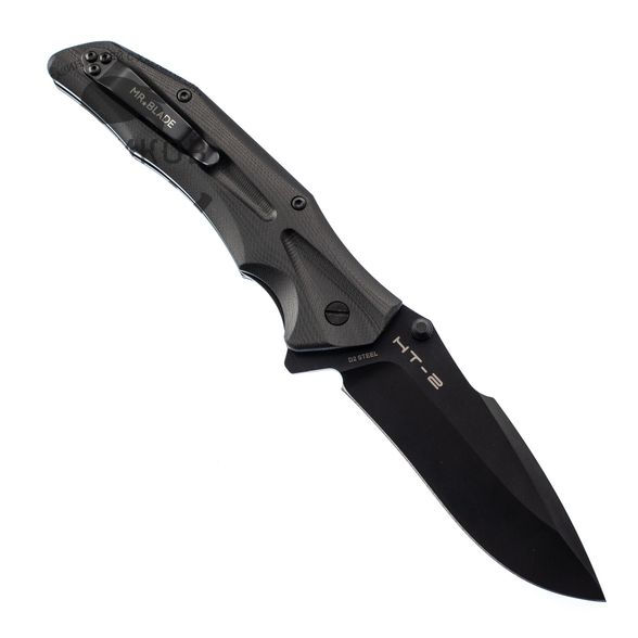 Нож складной HT-2 (Black) от популярного бренда Mr. Blade – инструмент-флиппер: раскрывать его можно как двусторонним шпеньком, так и с помощью «плавника». Нож крупного размера обладает конструкцией осевого узла. Форма клинка создана на основе clip point. Складной туристический нож выполнен из популярной стали D2 с заявленной твердостью 58-60 по Роквеллу. Поверхность обработана полимерным покрытием stonewash. Высокое качество исполнения, а также замок liner lock 2,5 мм толщиной, делают его по-особому надежным. По функциональности раскладной нож для похода и туризма можно считать универсальным. Ведь ему практически нет равных!