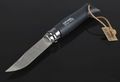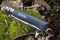 Клинок фиксируется механизмом Virobloc. Извлечение клинка из рукояти при помощи выемки на клинке у обуха Материал рукояти – граб. Клинок Clip-Point. Оснащен темляком.