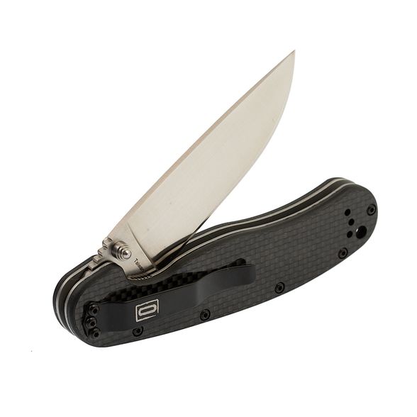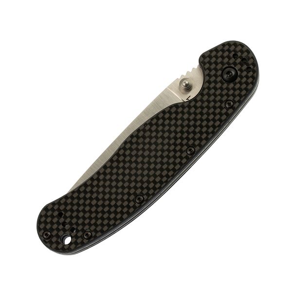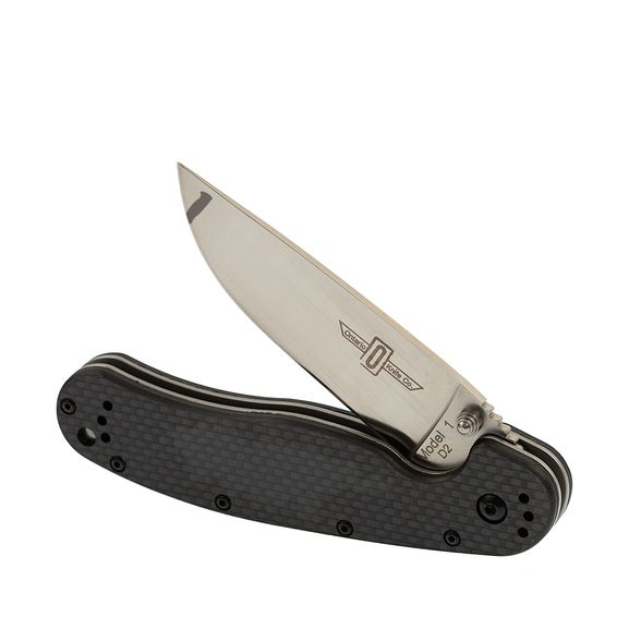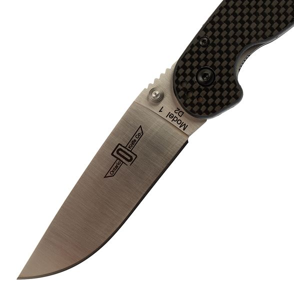 Серийный выпуск "Крысы" Ontario Rat Folder 1, D2, Carbon Fiber (артикул 8867CF) Любимая Крыса стала еще круче, замахнувшись на премиум сегмент ножей при демократичной цене "до ста баксов". Гладкий лоснящийся карбон в качестве накладок на рукояти придает великолепный вид и создает теплые и приятные ощущения в руке. Инструментальная сталь D2 с очень высокой твердостью (60-62 HRc) позволяет не думать о заточке ножа очень-очень долго и обладаети агрессивным резом, который характерен для этой стали.
