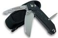 Нож складной с выкидным стропорезом Police III, сталь 690, пила, напильник, отвертки, открывалка, клинок сатин + автоматический клинок, рукоять черный алюминий, чехол черный нейлон.