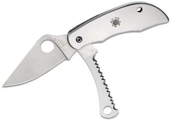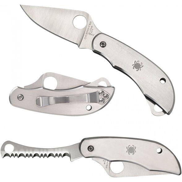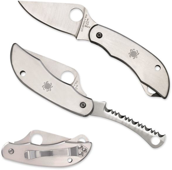 Нож складной + серрейтор ClipiTool with Serrated Blade Spyderco 176P&S, сталь 8Cr13MoV Satin Plain, рукоять нержавеющая сталь