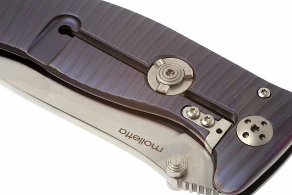 Особенности : Стальная вставка в титановом фрейме «Сухарь» Система защиты от случайного открытия Hinderer lockbar stabilizer® (модифицированный запорный стабилизатор поперечной устойчивости)