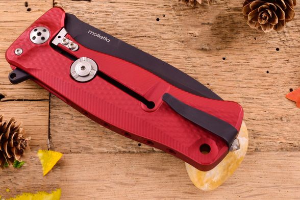Hinderer lockbar stabilizer® (запорный стабилизатор поперечной устойчивости), Lanyard Hole — отверстие или приспособление в рукояти ножа для страховочного корда или ремня., Pocket clip — клипса для ношения ножа на поясе или кармане, Стеклобой с твердосплавным наконечником (карбид вольфрама)