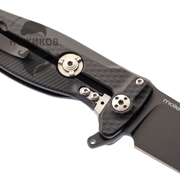 Hinderer lockbar stabilizer® (запорный стабилизатор поперечной устойчивости), Lanyard Hole — отверстие или приспособление в рукояти ножа для страховочного корда или ремня., Pocket clip — клипса для ношения ножа на поясе или кармане, Стеклобой с твердосплавным наконечником (карбид вольфрама)