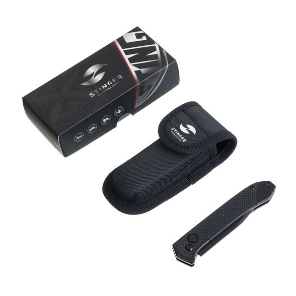 Нож складной Stinger 115 мм, сталь 8Cr14MoV, рукоять сталь/G10, черный