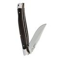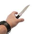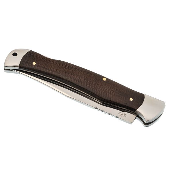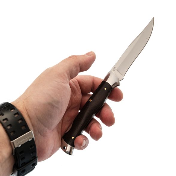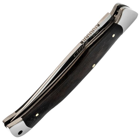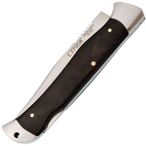 Нож складной Стриж от московского бренда Pirat имеет идеальное соотношение цены и качества. Клинок изготовлен из медицинской стали 40х13, ее твердость по Роквеллу составляет 55-56 единиц. Раскладной нож Стриж легко точится и долго удерживает заточку. Лезвие фиксируется благодаря одной из наиболее удобных конструкций Back-lock - эта система надежная и подходит для эксплуатации в любых условиях. Рукоять из эбенового дерева оснащена отверстием для темляка. Изделие комплектуется ножнами из кордуры, которые надежно фиксируются на клинке.