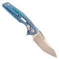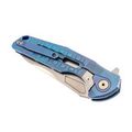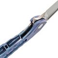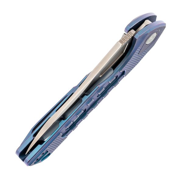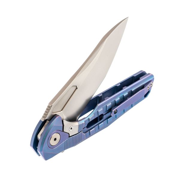 Рукоять ножа выполнена из легкого и прочного титана с применением технологии скелетонизации, что придает ей уникальный внешний вид и обеспечивает минимальный вес. Цельная интегральная конструкция рукояти обеспечивает ее прочность и долговечность. Текстурированные канавки и вырезы на рукояти не только придают ножу стильный вид, но и улучшают сцепление, обеспечивая уверенный и безопасный захват. Титановая карманная клипса позволяет удобно носить нож ежедневно, закрепляя его на ремне или кармане. Этот нож - отличный выбор для тех, кто ищет надежное и функциональное средство для повседневного ношения.