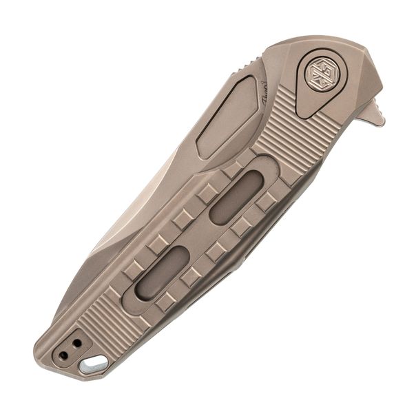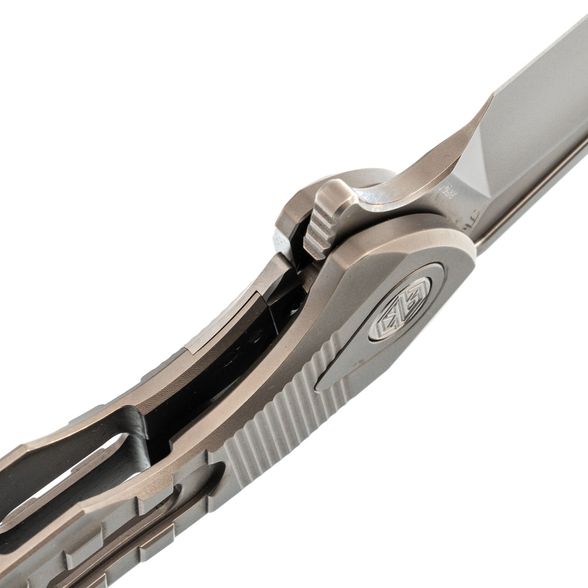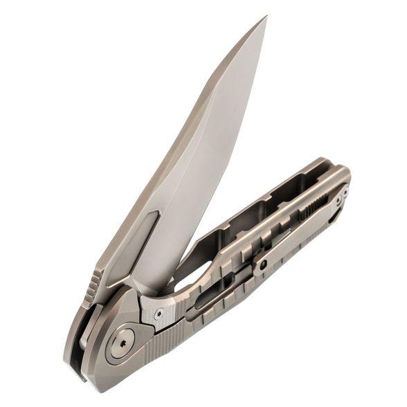 Нож складной Thor 3 Rikeknife, сталь M390, Plain Titanium - это легкая скелетонизированная титановая конструкция с цельной интегральной рукояткой. Нож имеет модифицированное лезвие танто с флиппером и рифлением вдоль выемки для большого пальца. Цельная рукоять имеет изящный, прочный профиль с текстурированными канавками и вырезами, способствующими надежному захвату. Надежная титановая карманная клипса обеспечивает удобство повседневного ношения. Особенности: Керамический шарикоподшипниковый шарнир обеспечивает легкое раскрытие флиппера. Цельная титановая конструкция обеспечивает прочность и долговечность. Усиленный сталью титановый фиксатор обеспечивает надежную фиксацию лезвия.