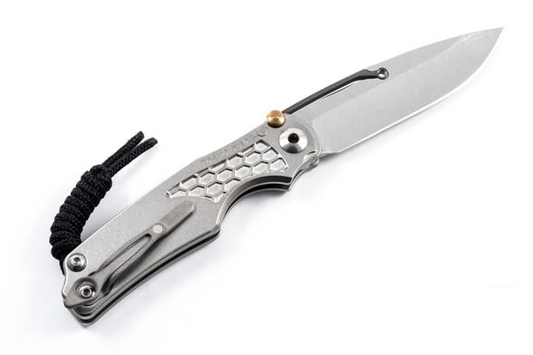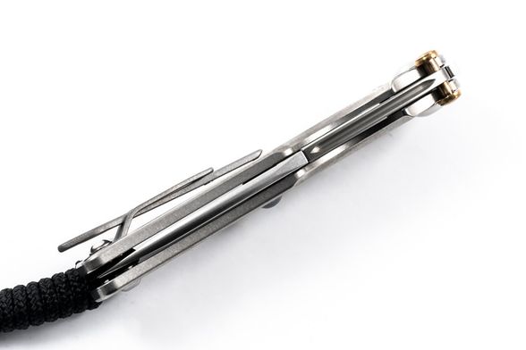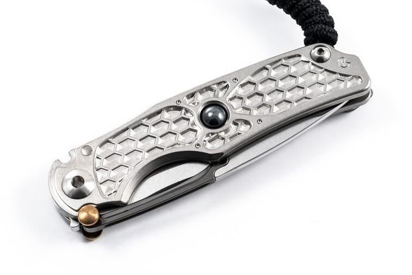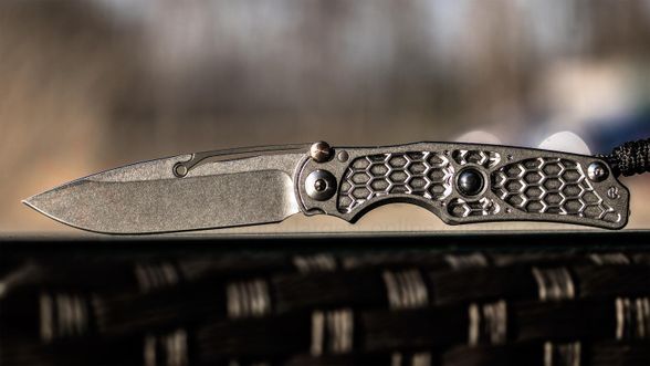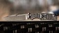 Рукоять ножа инкрустирована гиматитом, обработанным методом кабошон