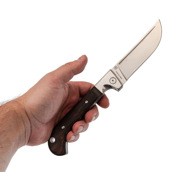 - Клинок из надёжной легированной стали 8Cr13MoV с прямыми высокими спусками;
