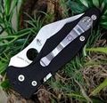 Специальная форма лезвия также разработана в соответствии с боевым и утилитарным применением Spyderco Yojimbo 2. Клинок изготовлен из порошковой стали CPM-S30V и имеет феноменально острую режущую кромку. Твердость находится на уровне 58-60 HRC. Сплав поход по химическим и физическим свойствам на японскую сталь Vg10. Нож хорошо сбалансирован и отлично контролируется в руке. Прочность клинка объясняется толщиной 4 мм и длиной всего 79 мм. Им можно точить дерево, нарезать резину и любые продукты питания.