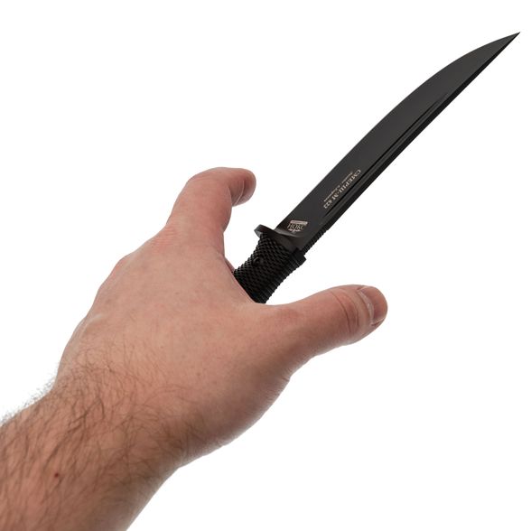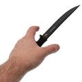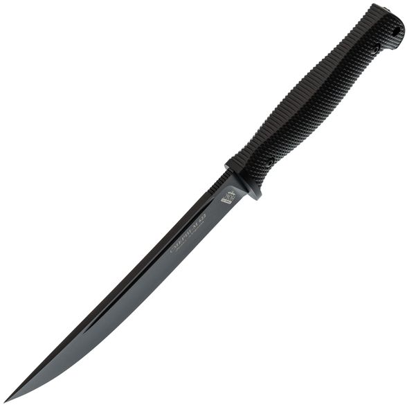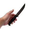 Рукоять ножа выполнена из прочного и легкого резинопластика, что обеспечивает ей надежность и долговечность в любых условиях эксплуатации. Форма рукояти продумана с точки зрения эргономики – благодаря специальной текстуре она обеспечивает превосходное сцепление, а сквозной тип монтажа гарантирует дополнительную прочность конструкции. Особое внимание уделено наличию крупного упора для руки, который значительно повышает безопасность при использовании. Такой дизайн обеспечивает уверенный хват и комфорт даже при длительном использовании ножа.