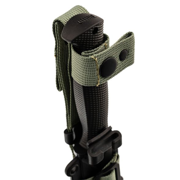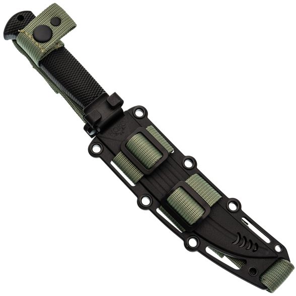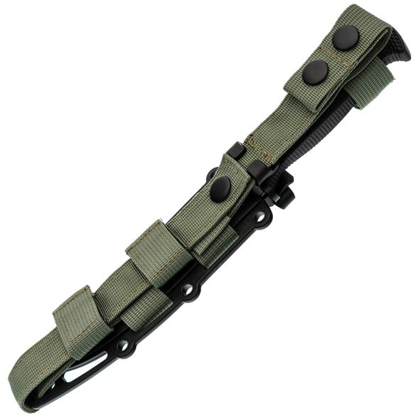 Ножны изготовлены из высококачественного кайдекса – термопластика, способного формоваться под контуры ножа, что обеспечивает надежное удержание даже при нестандартной ориентации (например, рукоятью вниз). Этот материал устойчив к воздействию воды и резким перепадам температур, что позволяет использовать нож в любых климатических условиях. Дополнительно, нож оснащается системой ношения с помощью стропы Molle, что обеспечивает удобное и безопасное переноску в полевых условиях. Такой комплект делает нож максимально мобильным и практичным для активного отдыха и выживания.