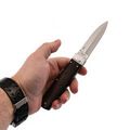 Рукоять из дерева в стиле Black удобно ложится в руку, обеспечивая превосходное заполнение руки - так нож не будет доставлять дискомфорт при работе. Черное покрытие скрывает накапливающиеся загрязнения.