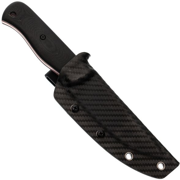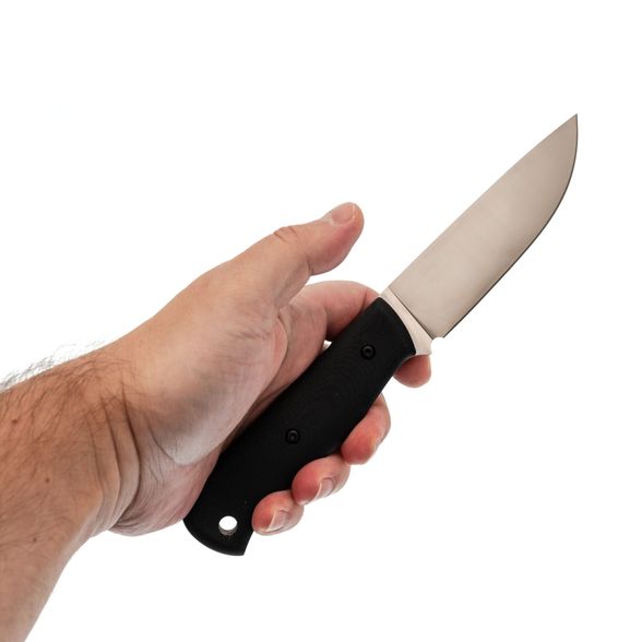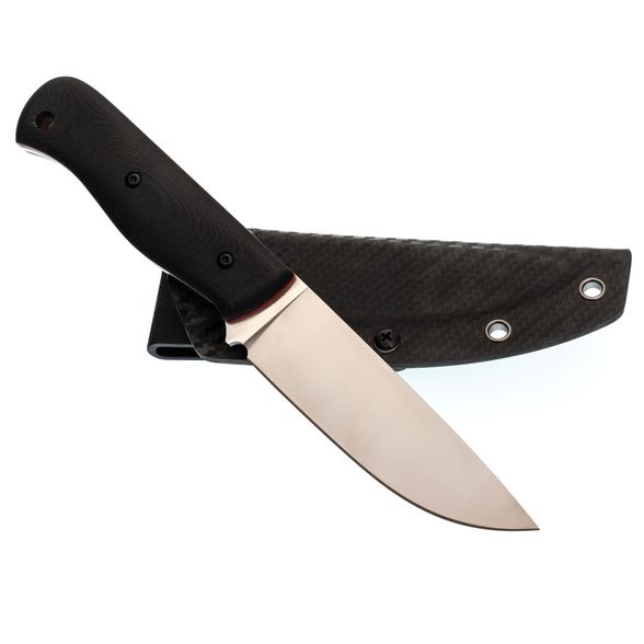 - Рукоять выполнена из G10, она лёгкая, но при этом надёжная, даёт хороший захват и не скользит в руке. Ножны из Kydex надёжно фиксируют нож и позволяют носить его с комфортом.