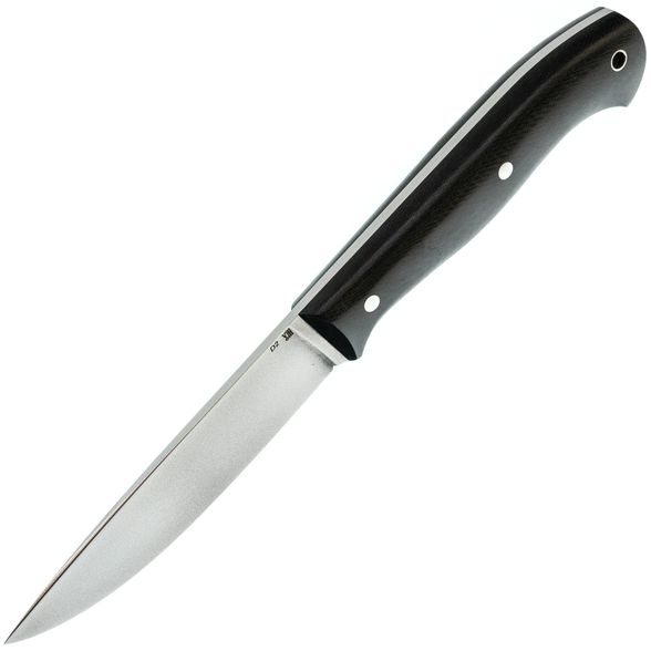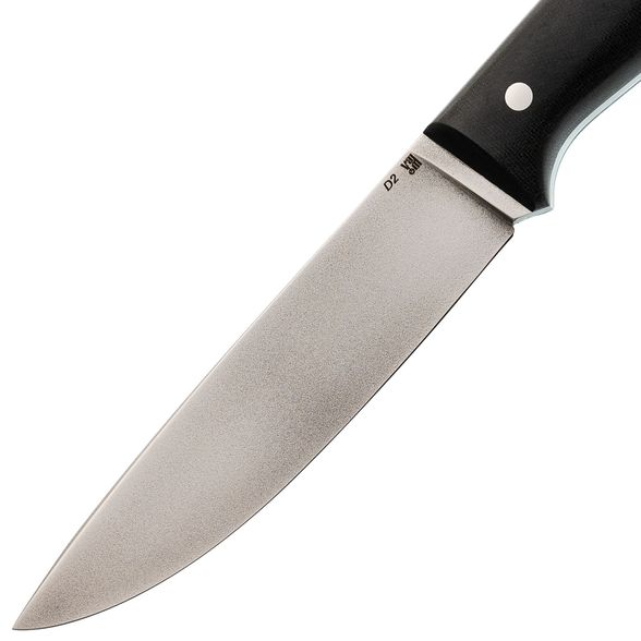 Клинок имеет универсальную длину 120 мм, которая имеет достаточную длину для большинства задач, при этом всё ещё достаточно манёвренную. Сталь из которой выполнен клинок это популярная инструментальная сталь D2 - она пользуется популярностью за счет того, что лучше большинства сталей в своём ценовом сегменте держит заточку, и имеет агрессивный рез. Форма клинка это универсальный Drop-Point, им одинаково удобно выполнять любую работу - по праву считается лучшей формой для ножа. Прямые спуски от обуха обеспечивают ножу отличный рез, что по продуктам что материалам вроде дерева.