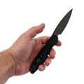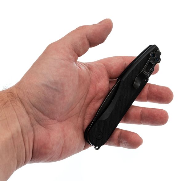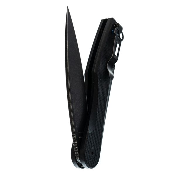 Daggerr Sparrow — компактный представитель птичьей линейки бренда, название "Воробей" подчеркивает его небольшой размер в рамках коллекции, при этом нож обладает средними габаритами, что делает его универсальным для выполнения различных задач. Клинок из стали D2 сохраняет остроту долгое время, а черное покрытие защищает от коррозии. Резучая геометрия клинка позволяет легко справляться с разными материалами. Рукоять изготовлена из прочного, неприхотливого и водостойкого стеклотекстолита G10 с цепкой текстурой, обеспечивая комфортное удержание. Замок представляет собой модифицированный Liner-Lock с кнопочным механизмом для удобного инерционного открытия и закрытия. Нож также оснащен крупным темлячным отверстием.