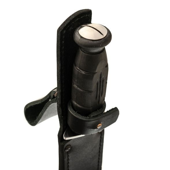 Ножны, изготовленные из натуральной кожи, оснащены жестким подвесом, что обеспечивает безопасное и удобное ношение ножа. Их дизайн отдает дань уважения классическому стилю ножа разведчика, при этом обеспечивая современную функциональность.